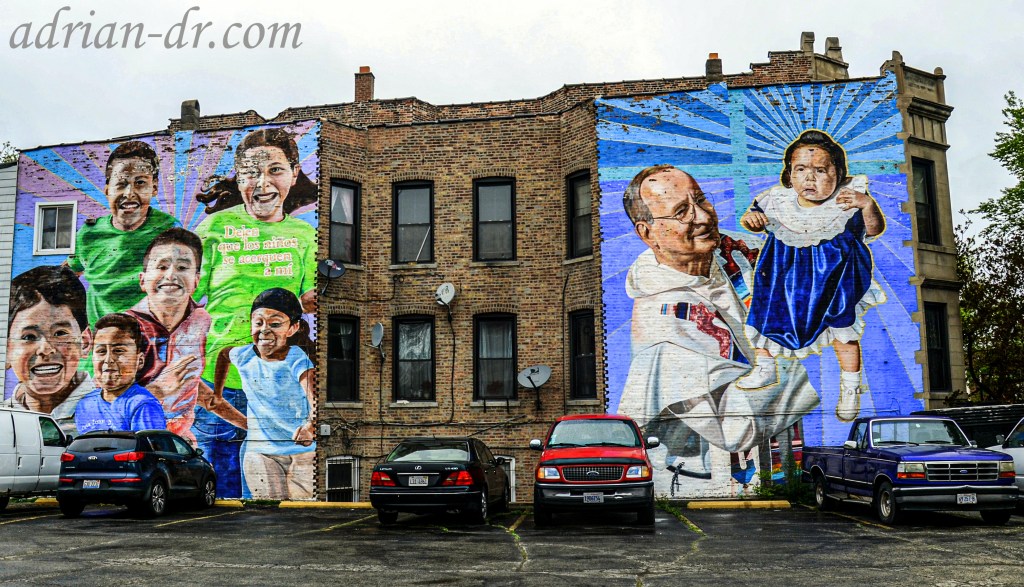 Religious murals near Heart of Chicago
